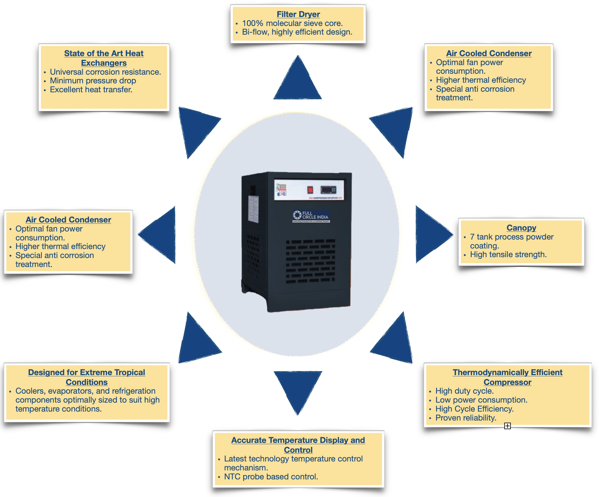 At Full Circle India, we deliver high-quality refrigerated compressed air dryers that ensure your compressed air systems remain clean, dry, and efficient, helping you maintain smooth operations and avoid costly downtime.
